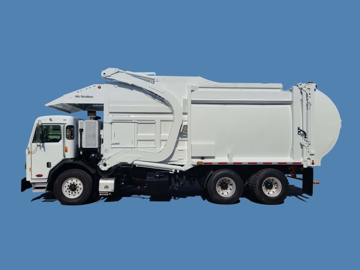 2019 Peterbilt 520 Front Loader, Cummins ISX (350HP), Allison 4500-RDS Automatic Transmission, 56,505 Miles, 7,108 Hours, A/C, Heater, Power Windows, Stereo, Cruise Control, Inter-Axle Diff Lockout, 4.89 Rear Ratio, 66,000 lbs GVW, McNeilus Atlantic 40 Yard Front Loader, 10,000 lbs Arms Lifting Capacity, Joystick Controls, Full Eject Dump, Hopper Cover, Safety Camera System, Very Clean Ex-City Unit