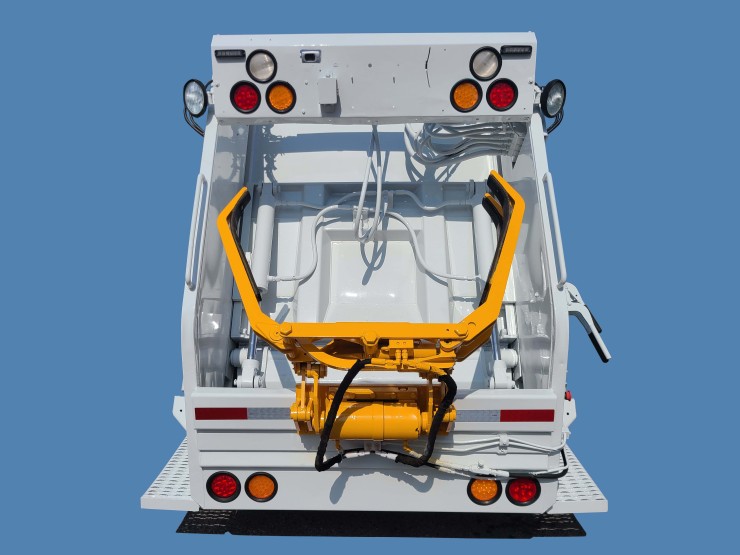 2013 Ford F550 Rear Loader, 6.8L V10 360HP Gasoline, 6-Speed Automatic Transmission, 82,281 Miles, 19,500 GVW, A/C, Cruise Control, Stereo, New Way Diamondback, 6 Yard Capacity Body, Perkins Folding Grabber Arm Lifter, Handles Up To 96 Gallon Carts, 400 lbs LIft Capacity, 6-8 Second Cycle Time, Rear View Camera System, No CDL Required, Very Clean Ex-City Unit
